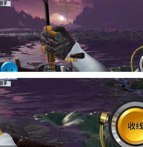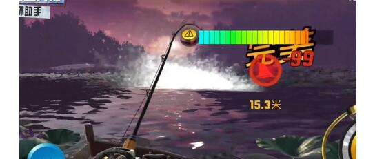 3、成功的机会主要是巨物BUFF,这样就有机会可以得到这个奇珍鱼,当现实出现的时候就可以直接去摆动,慢慢收紧放松鱼线,让它在我们最远距离拉爆鱼竿,这手我们再用到这个巨物BUFF。