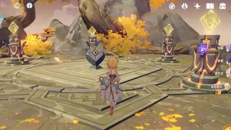 正式开启战斗以后,可以跟随指引进入指定区域,在楼梯的位置会看到三个岩属性的石柱,这些石柱全部都是被点亮的状态。我们需要针对每个石柱进行标注,按照顺时针的方式排列出1-5号。正对我们前方的就是1号,首先要先将2号点亮。在点亮石柱的过程中碰到石柱燃烧是正常现象,如果此时点亮其中一个,那么它对角线的另外两个石柱就会被开启,如果此时触碰的石柱已经被点亮,那么就会自动燃烧。接下来可以继续点亮3号,随后就是按照顺序进行4号和5号石柱的点亮,最后才是1号。