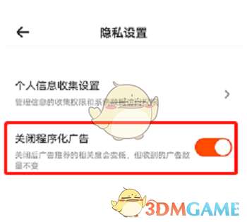 4、将【关闭程序化广告】打开即可完成(如图所示)。
