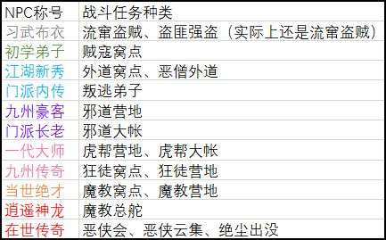 不同品阶的NPC的战斗任务: