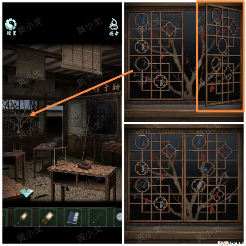 4.点击窗户,关上窗,获得线索(在框里的布条的颜色及数量)