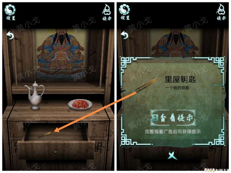 15.点击右侧里屋的门,用【里屋钥匙】打开
