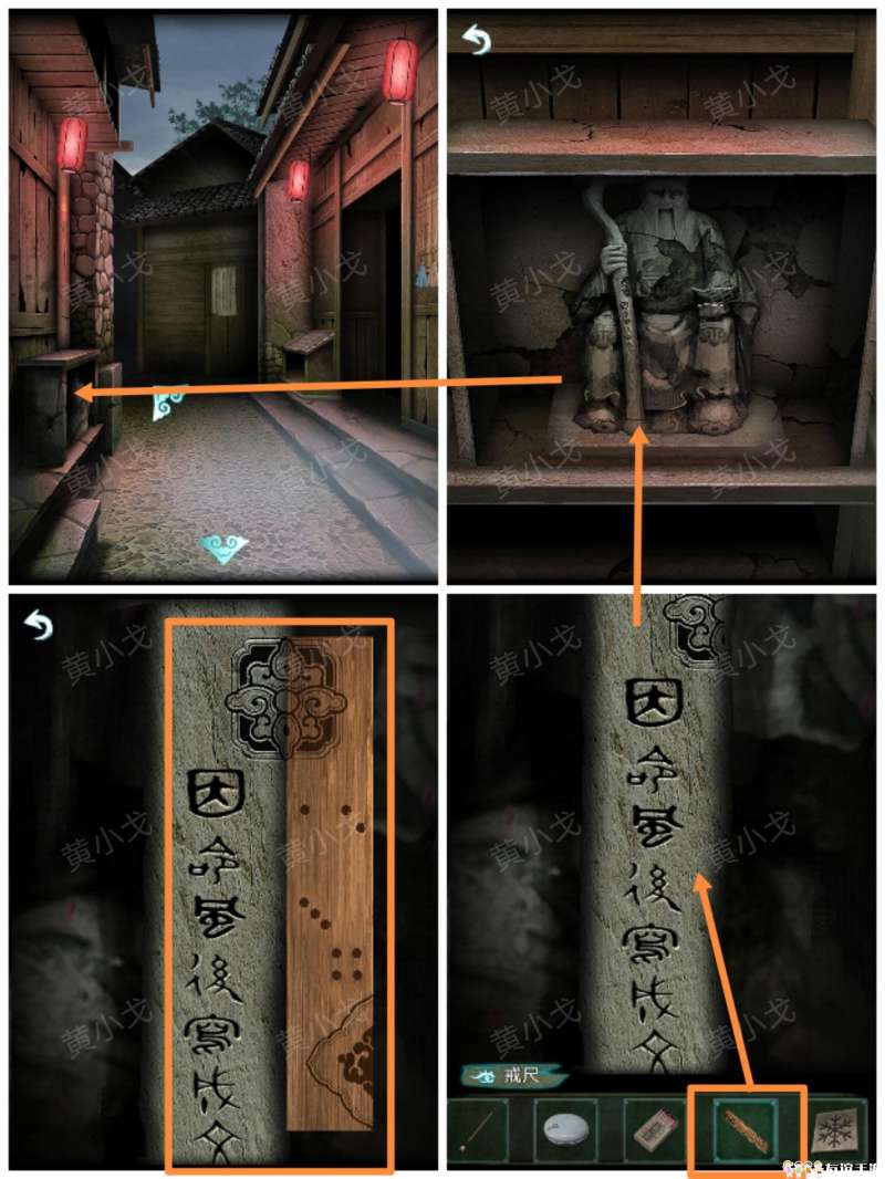 15.点击土地公石庙,点击拐杖,放上【戒尺】,获得线索
