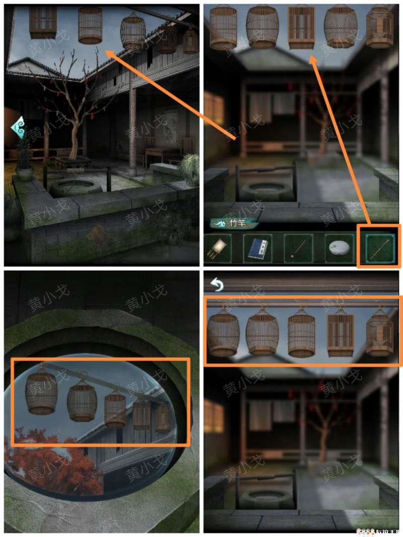 7.点击挂着的灯笼,使用【竹竿】;根据井里的线索,正确摆放灯笼的位置