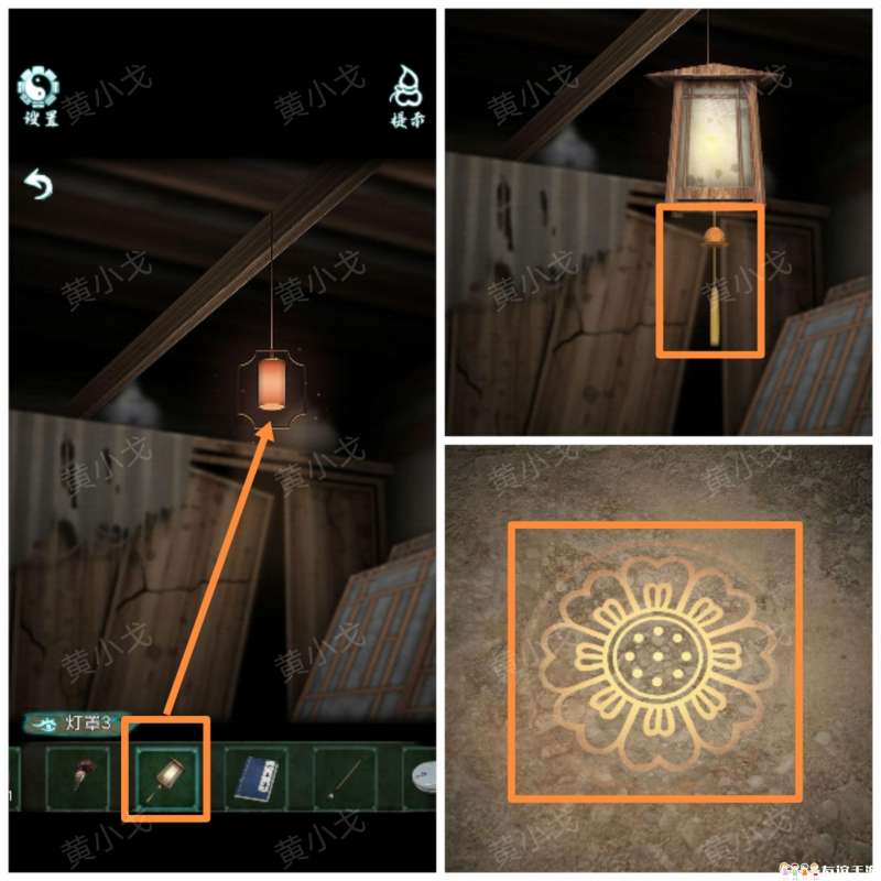 11.用【火柴】点燃烛芯,套入【灯罩1】,查看地上的图案