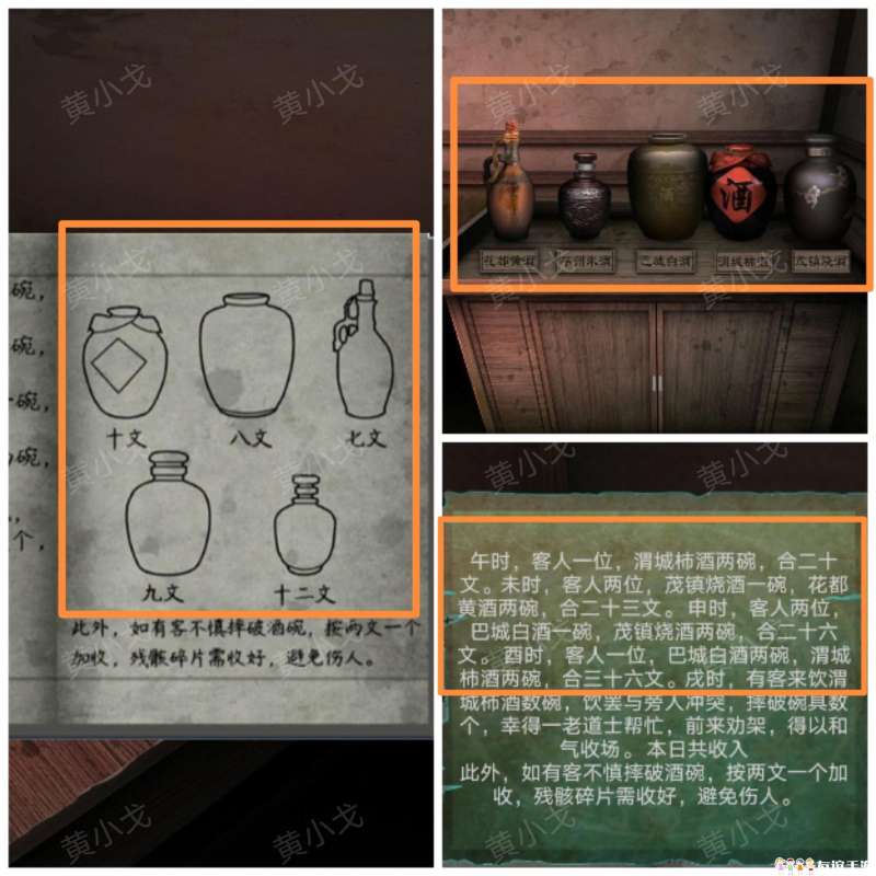 4-2.桌子上有四个碗,说明戌时点了四碗渭城柿酒,一共是40文