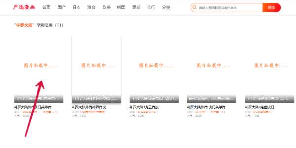第三步:在下方找到对于的漫画资源,点击进入即可进行观看。(因网络原因十大评测的严选漫画官网中的图片加载缓慢无法显示)