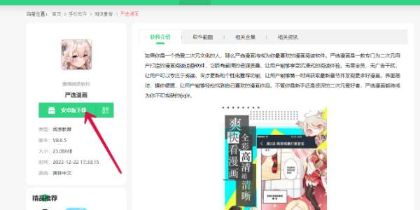 第一步:首先点本攻略上方的严选漫画APP下载按钮进入本站的严选漫画APP下载界面。