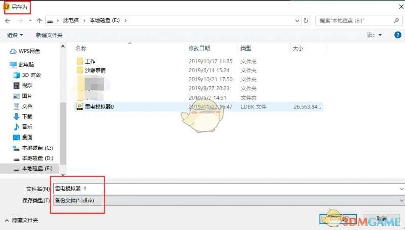 3、点击备份,建议放在平时放文件的盘里,而不是C盘,这样方便找到。如图,文件保存到某个盘里,点击“保存”,系统就会开始保存你的模拟器数据,注意,模拟器资料软件游戏越多,保存的时间就会越长。