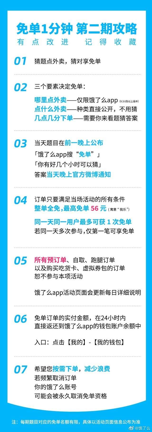 1、每单免单的金额上限调整设定到56元,让更多消费者按需下单,尽量减少“点多了”带来的餐食浪费;