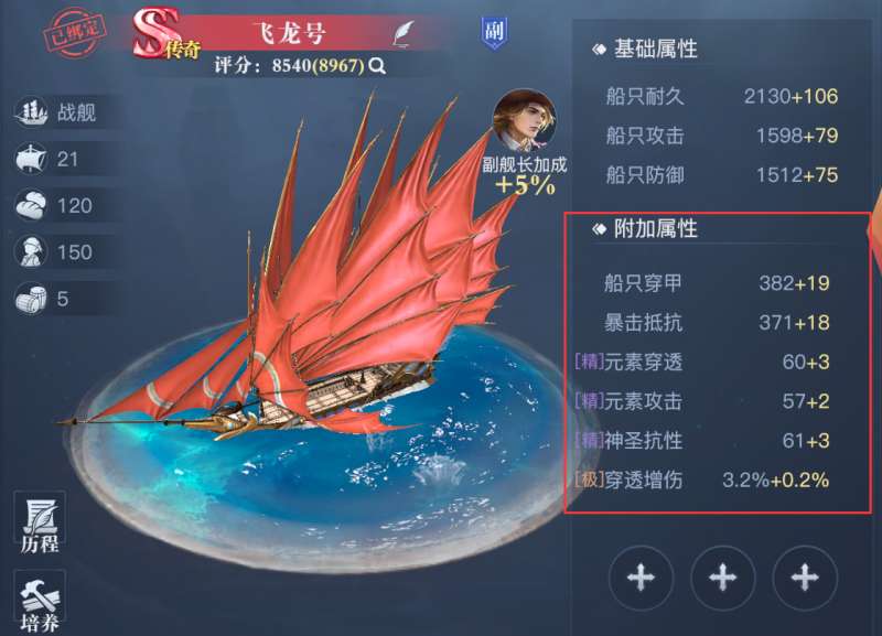 SS级战舰是每个舰长都梦寐以求的,SS级战舰不仅多出额外的随机4-6条附加属性,还拥有当前等级阶段最高的船只攻击和防御属性!