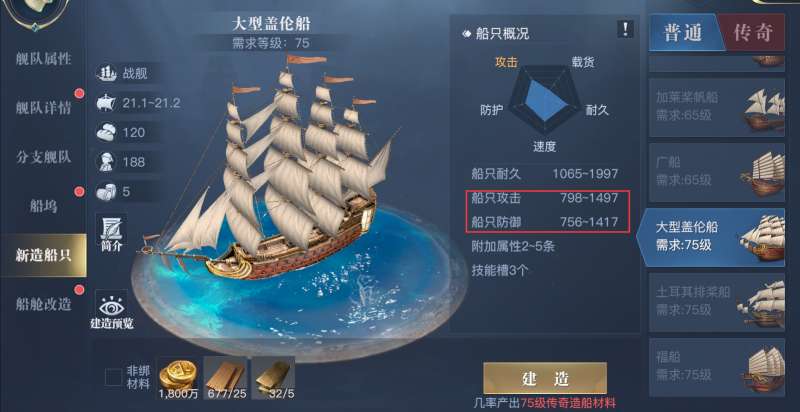 | 75级 | 大型盖伦船 | 1800万贸易币、25木材、5铁块 | 普通 |