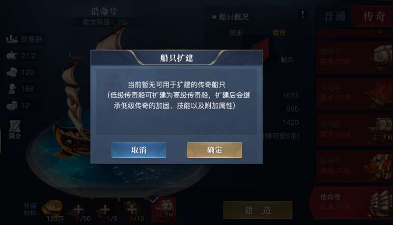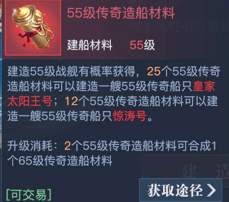 如果有多余的低级传奇材料,可以通过合成的方式获取更高阶的传奇造船材料!