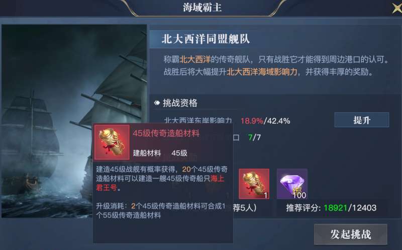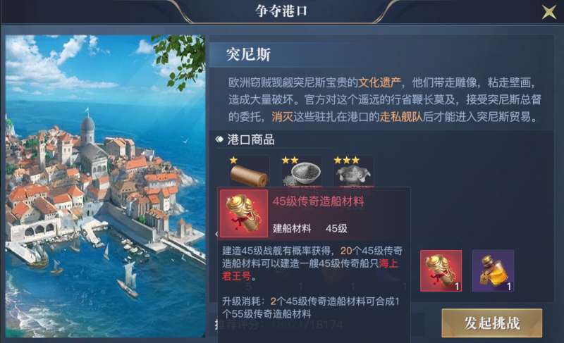当战斗力达到挑战要求后,可以通过地图中争夺标识,挑战港口成功后可以获得传奇造船材料。