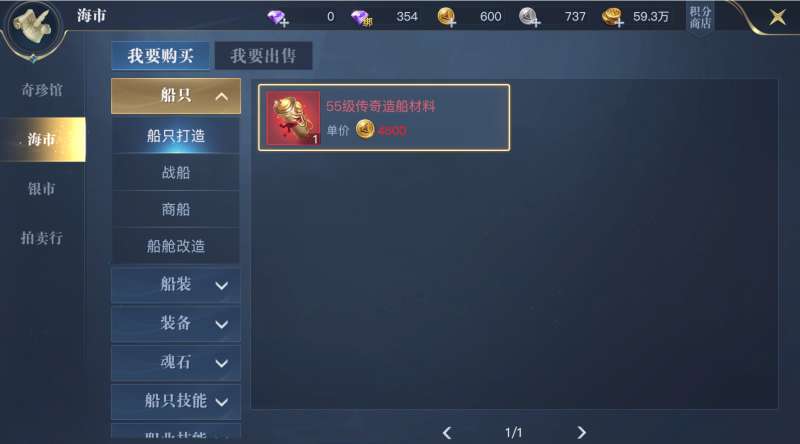 当运气好时,可以在海市中发现我们想要的传奇造船材料,花费相应的金币购买即可。