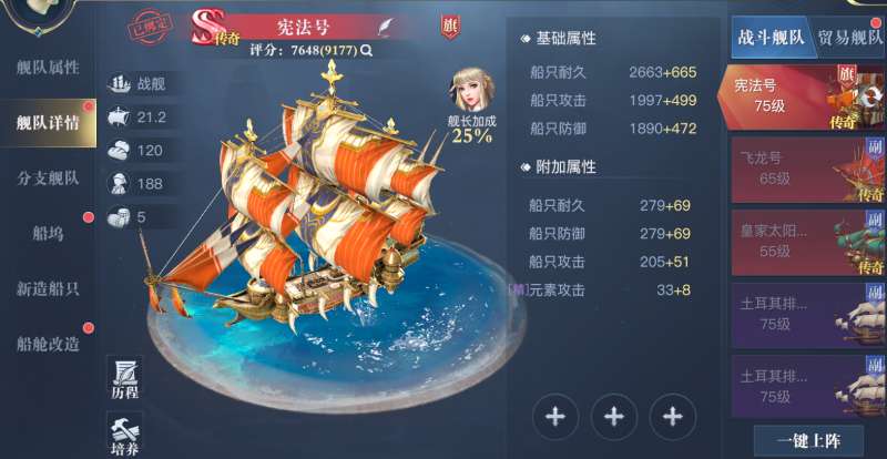 | 宪法号 | 360万贸易币、250木材、25铁块、35个75级传奇造船材料 | 传说 | |