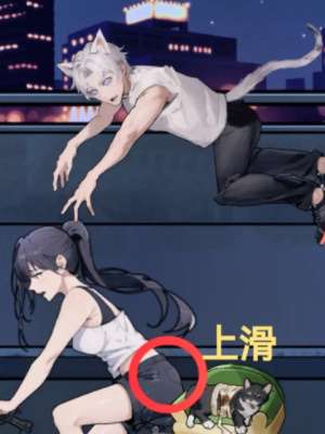 4、最后在新的场景出现选择,我们忽视选项而是上划女子裤子口袋找到小猫绝育缴费单即可通关。