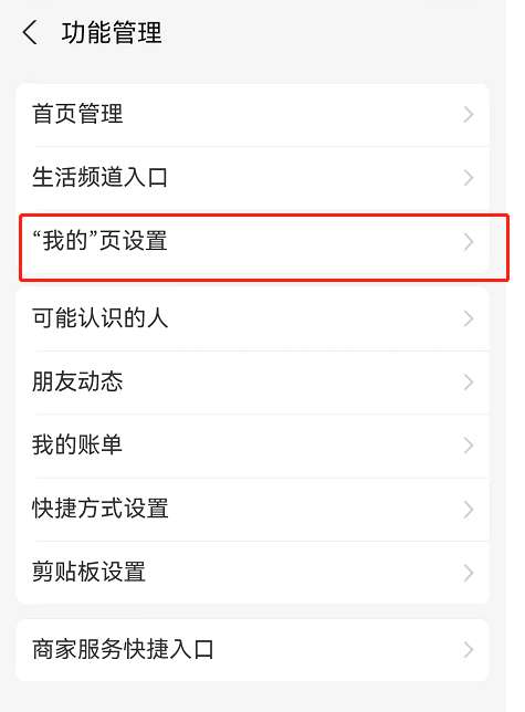 3、进入功能管理后可以看到【我的页设置】,点击进入。