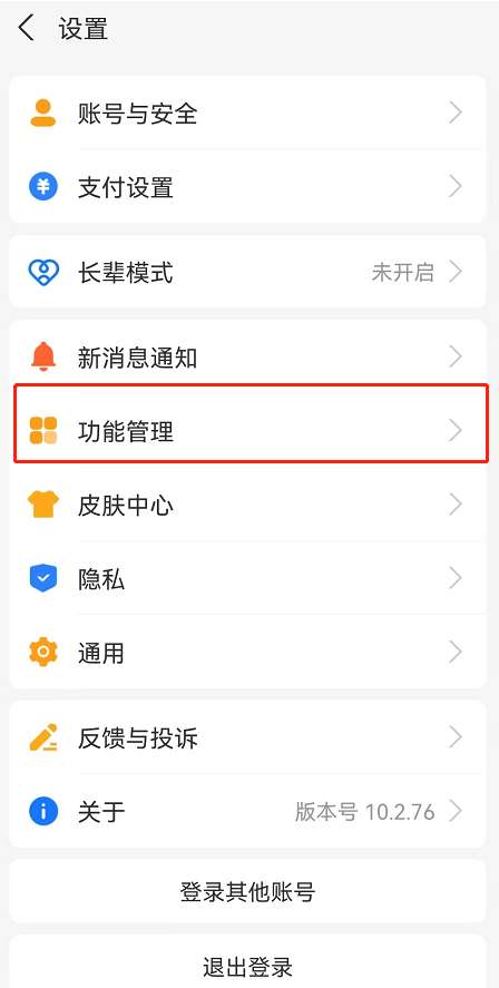 2、在设置中找到【功能管理】进入。
