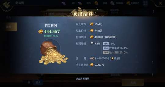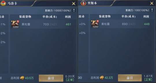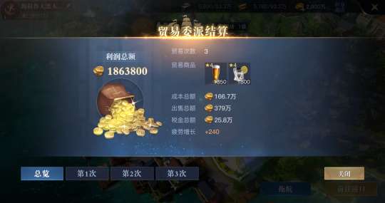 3.到达每日流行贸易触发时间段后,务必将每天的流行贸易的福利货物都贸易完,不增加疲劳且收益十分可观,每日必做。