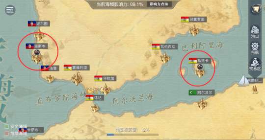 我们购买货物后便可打开世界地图,查看其他收购该货物港口的收购价,并进行比价后,选择收购价格最高的一个港口,以达到贸易收益最大化。