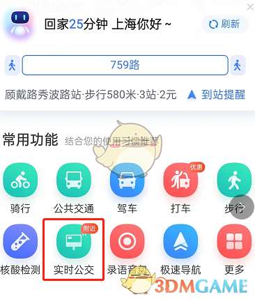 2、点击实时公交。