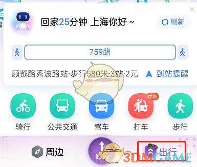 1、打开百度地图,点击右下角出行。