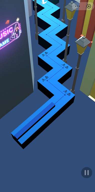 6、这是云音跳球游玩界面。用户需要根据前方道路,拖动小球改变前进方向。