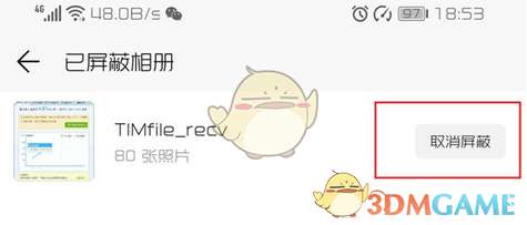 2、在底部的疑似缓存图片中,点击【查看已屏蔽相册】。