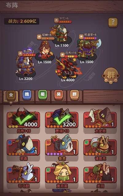 站位前排邢道荣吕布,后排华佗貂蝉贾诩,有公孙瓒建议换掉华佗,貂蝉可以减怒气,邢道荣抢回合不建议换。
