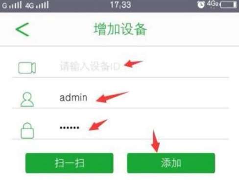 查看设备的ID、用户名和密码完成设备添加。