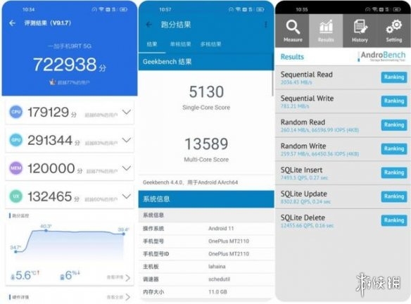 一加9RT在GeekBench4跑分如下。从跑分来看,超过了其他骁龙888的手机,得益于超强的空间级散热技术。