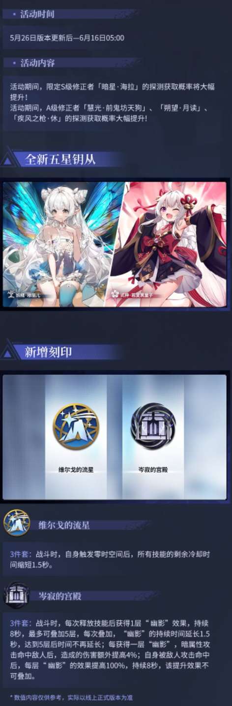 深空之眼1.1版本正式开启。深空之眼5月26日正式开启1.1版本,新角色暗星海拉已经正式进入卡池,下面为大家介绍一下本次1.1版本活动内容,感兴趣的小伙伴一起来看看吧!