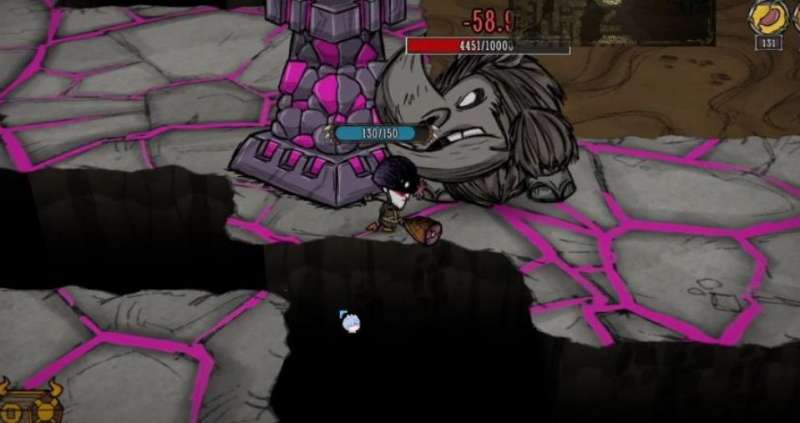 他有两个攻击模式,在第一阶段里会使用普通攻击,对玩家进行撕咬,造成一百点的单体伤害。同时还会在短暂蓄力以后,朝着我们进行冲撞。将途径上的建筑全部都撞毁,并对第一个撞到的生物造成较高的伤害。玩家可以利用该特性引诱该boss撞到花园上的柱子上,一旦撞到便会引发小型地震。同时柱子会掉落数个碎块,给对其造成伤害。
