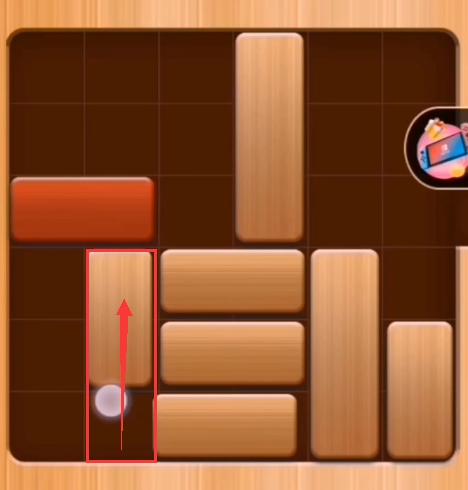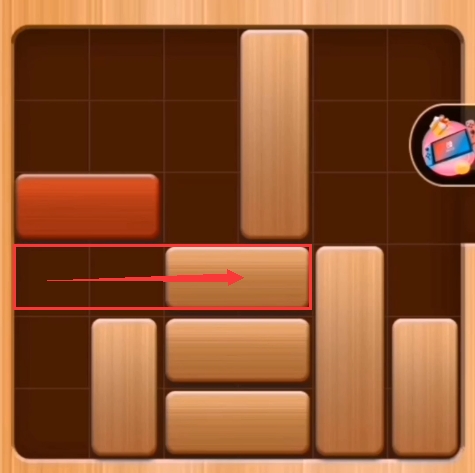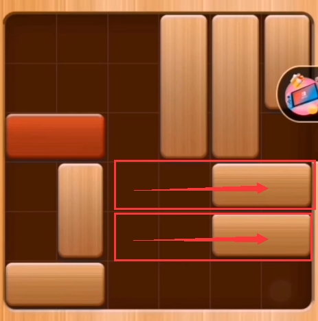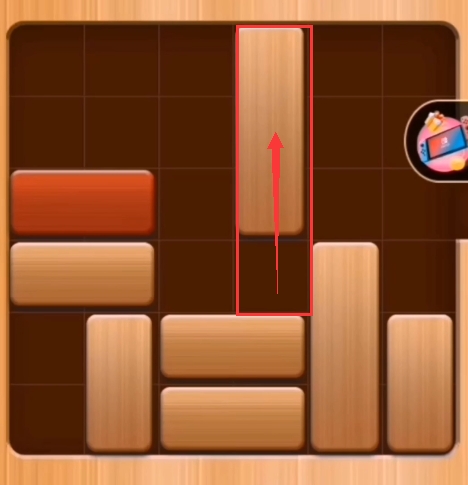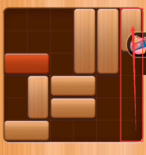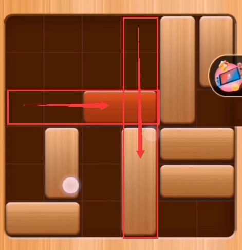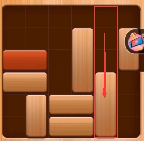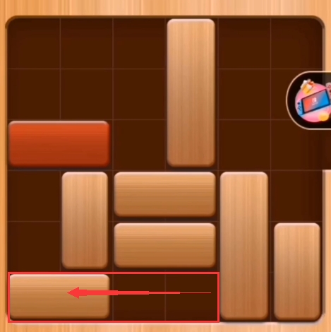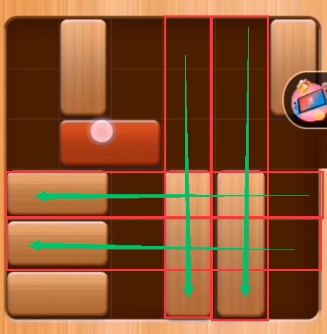 第十步:将红木往右边推并把第四列的竖立的积木往下推(如图:)