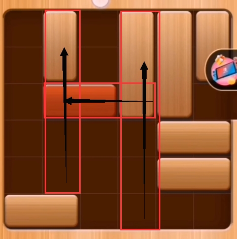 第十一步:将第二列、第四列的竖立的积木均上推并把红木往左边推(如图:)