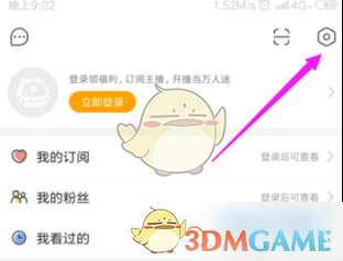 2、然后我们就会进入到虎牙直播的我的界面,我们点击界面右上角的齿轮状图标。