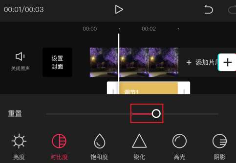 设置完对比度数值后,点击对号图标保存。到此使用剪映设置对比度的方法就介绍完了。