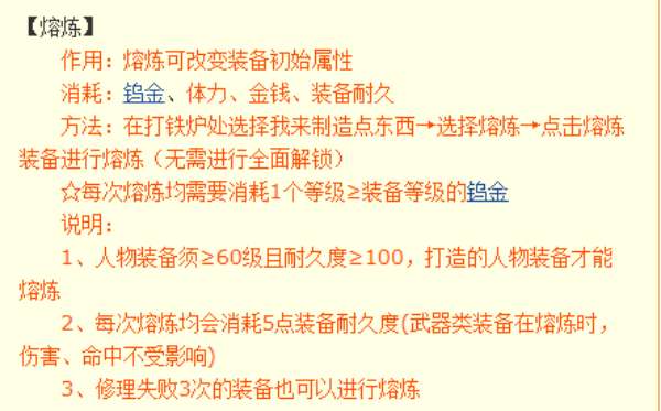 4、玩家需要注意的是每次熔炼均需要消耗1个等级≥装备等级的钨金,并且熔炼后的装备无法交易。