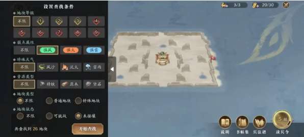 新增地块查找功能,大家可以点击玩法界面左侧的“查找”按钮进入。通过自定义地块的等级、弱点属性、特殊天气、资源类型等条件,快速筛选出满足条件的目标地块。