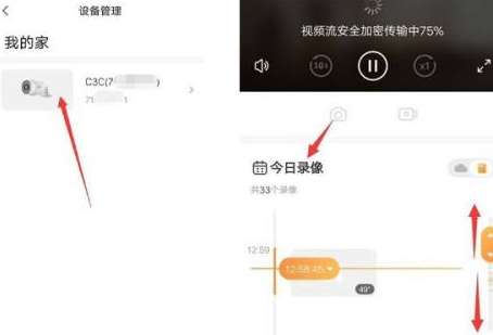 点击需要查看的设备即可看到视频监控,在设备下方滑动滑块还可查看视频监控回放。