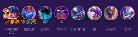 1、阵容成员:厄斐琉斯、蕾欧娜、瑟庄妮、莎弥拉、阿利斯塔、蔚、孙悟空、瑟提