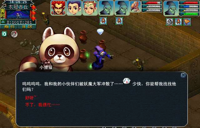 玩家可以在〔101,281〕找到一只小狸猫,玩家帮它寻找另外2个同伴。