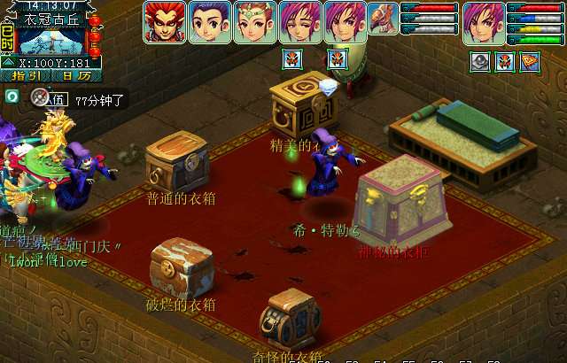 玩家可以在〔100,181〕进入一个满是衣箱的房间,点击神秘衣柜,触发绫罗绸缎隐藏任务。