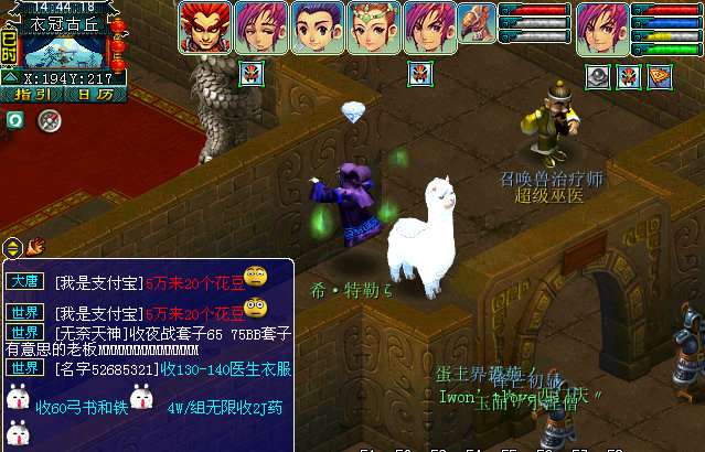 玩家可以在〔194,217〕找到一只羊驼,追着它鼠标点击5次,即可获得奖励。