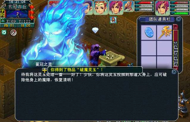 回到冠冕之灵处,得到破魔灵玉。回去找神秘道人发生战斗。