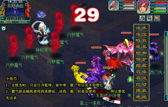 战斗简单,难度小。可以选择优先击杀主怪。杀完回去的路上,还是要小心躲避神秘道人和他的分身。