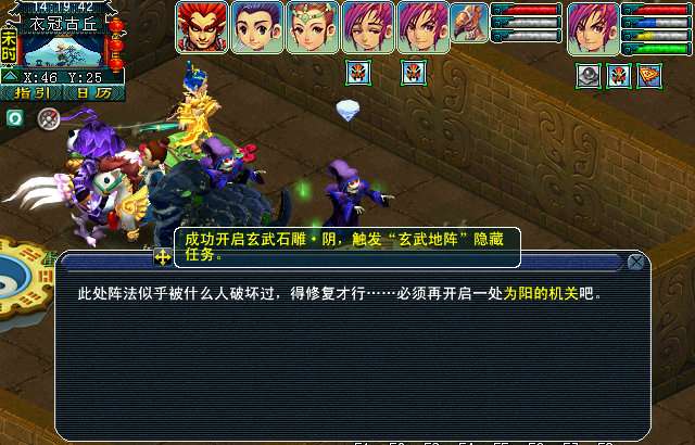 玩家可以在〔46,25〕找到一个玄武雕塑,点击触发玄武地阵隐藏任务。