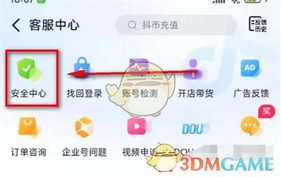 3、接着在客服中心页面里点击“安全中心”这一项进入。