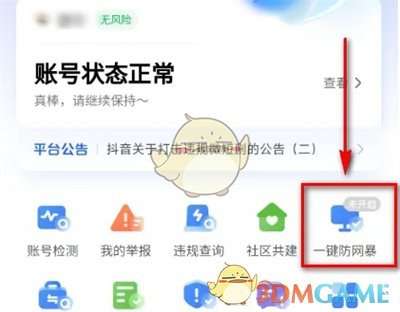 4、随后在安全中心页面里有一个“一键防网暴”,找到后点击。